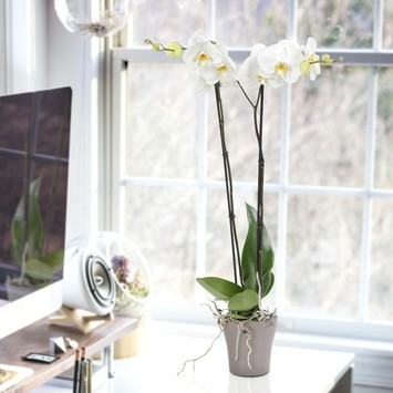 Deze orchidee doet het goed op een lichte plek, maar niet direct in de zon. Zorg voor een kamertemperatuur (minimaal 15 graden). Wanneer de aarde bijna droog is, is het tijd om water te geven. Zo eens in de zeven à negen dagen. Besproei dan direct de jongste kopjes.