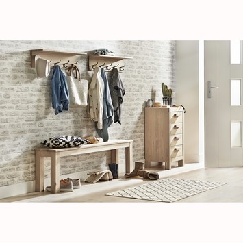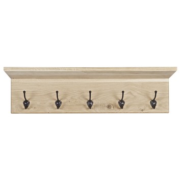 Hang je jas en andere kledingstukken voortaan op aan de Oslo kapstok eiken 19x79x17 cm. Deze kapstok is gemaakt van massief onbehandeld eiken, waardoor de kapstok robuust en stabiel is. De fraaie kapstok is niet alleen functioneel, ook is deze mooi om te zien. Kapstok Oslo is neutraal en staat in nagenoeg ieder interieur. De kapstok heeft een compacte afmeting van 19x78,5x17cm en aan de 5 haken van de kapstok kun je jassen en andere kledingstukken hangen. Monteer de kapstok in slechts enkele stappen met de makkelijke montage-instructie en plaats de kapstok in bijvoorbeeld jouw hal of bijkeuken. Kortom: kapstok Oslo mag niet in jouw woning ontbreken.