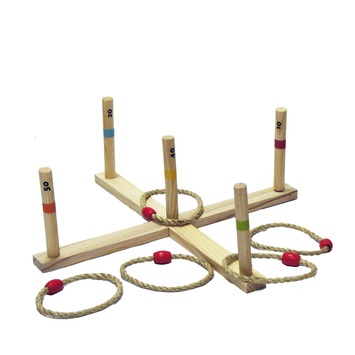 Kun jij de ringen om de palen met de meeste punten gooien? Vervaardigd van hout; de palen zijn 15 cm hoog. Inclusief 5 ringen van touw. Afmetingen: 49,5 x 49,5 x 17 cm. Wordt geleverd in doos. Geschikt voor kinderen vanaf 5 jaar.