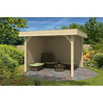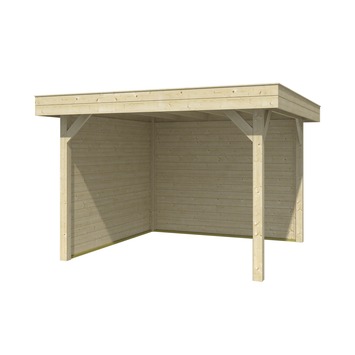 Een overdekte plek in je tuin nodig om je terrasspullen of tuinhout onder te zetten? Denk dan eens aan de vrijstaande overkapping Bali 354x354 cm. Deze overkapping is gemaakt van Noord-Europees vurenhout, een zachte houtsoort, eenvoudig te bewerken en betaalbaar. Op het dak ligt hoogwaardige EPDM-rubberfolie, een waterdicht materiaal met een levensduur van ongeveer 50 jaar. Met de meegeleverde dakdoorvoer en afvoerpijp zorg je dat het regenwater netjes wordt afgevoerd. De massieve palen zijn 12x12 cm dik en geven de overkapping een stoer en robuust uiterlijk. Dit vierkante tuinverblijf is 243 cm hoog, dus je kunt ook in de hoogte veel opslaan. De twee wandelementen zorgen voor beschutting en veel privacy.