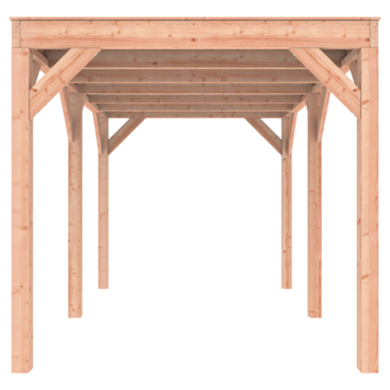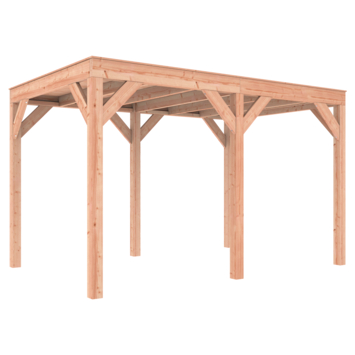 Deze modern vormgegeven overkapping biedt een perfecte balans tussen uitstraling en functionaliteit.De totale afmetingen zijn 245 cm hoog, 395 cm breed en 255 cm diep en heeft een doorloophoogte van 224 cm.Zoek je een overdekte plek voor ontspanning in de tuin? Deze sfeervolle overkapping is een aanwinst voor iedere tuin.Klaar voor een groene toekomst:Dit modern vormgegeven tuinverblijf is speciaal ontworpen om zonnepanelen of een sedum dak te kunnen ondersteunen, Hierdoor is dit verblijf een duurzame en milieuvriendelijke aanvulling op uw tuin is.Zelf aan de slagDankzij de duidelijke opbouwomschrijving, meegeleverde bevestigingsmaterialen en op maat gezaagde onderdelen, is de installatie van dit tuinhuis een haalbare klus voor iedere gemiddelde doe-het-zelver. Dak bekleding:Wij raden aan om deze Douglas overkapping te voorzien van een EPDM Dak bekleding voor een lekvrij dak (Let op: los bij te bestellen).Onderhoud:Bij het kopen van een overkapping is onderhoud een aandachtspunt… Met Douglas hout heb je het goed voor elkaar, Douglas is namelijk van zichzelf al een sterke houtsoort. Het gaat zonder extra behandeling eenvoudig 10 tot 15 jaar mee. Om de maximale levensduur te verlengen kun je gebruik maken van speciale Douglas beits of Douglas olie en elke 2 jaar opnieuw beitsen of oliën.