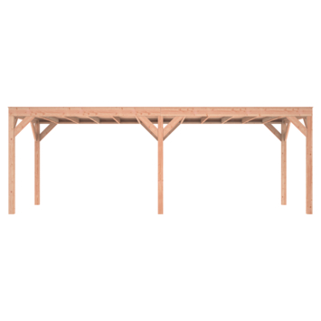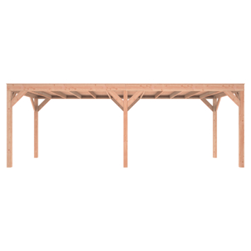 Deze modern vormgegeven overkapping biedt een perfecte balans tussen uitstraling en functionaliteit.De totale afmetingen zijn 245 cm hoog, 695 cm breed en 255 cm diep en heeft een doorloophoogte van 224 cm.Zoek je een overdekte plek voor ontspanning in de tuin? Deze sfeervolle overkapping is een aanwinst voor iedere tuin.Klaar voor een groene toekomst:Dit modern vormgegeven tuinverblijf is speciaal ontworpen om zonnepanelen of een sedum dak te kunnen ondersteunen, Hierdoor is dit verblijf een duurzame en milieuvriendelijke aanvulling op uw tuin is.Zelf aan de slagDankzij de duidelijke opbouwomschrijving, meegeleverde bevestigingsmaterialen en op maat gezaagde onderdelen, is de installatie van dit tuinhuis een haalbare klus voor iedere gemiddelde doe-het-zelver. Dak bekleding:Wij raden aan om deze Douglas overkapping te voorzien van een EPDM Dak bekleding voor een lekvrij dak (Let op: los bij te bestellen).Onderhoud:Bij het kopen van een overkapping is onderhoud een aandachtspunt… Met Douglas hout heb je het goed voor elkaar, Douglas is namelijk van zichzelf al een sterke houtsoort. Het gaat zonder extra behandeling eenvoudig 10 tot 15 jaar mee. Om de maximale levensduur te verlengen kun je gebruik maken van speciale Douglas beits of Douglas olie en elke 2 jaar opnieuw beitsen of oliën.
