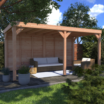 Deze Douglas terrasoverkapping met achterwand is een toegevoegde waarde voor iedere tuin. De karakteristieke look die Douglas hout jouw tuin in brengt zorgt voor een natuurlijke en vooral sfeervolle uitstraling. Het Douglas hout is een sterke soort tuinhout dat van nature goed bestand is tegen vuil en vocht. Deze houten overkapping is 522 cm breed en 270 cm diep en wordt geleverd inclusief EPDM-folie voor een waterdichte dakbedekking. Het totaalpakket staat extra stevig dankzij de 12x12 cm Douglas palen.