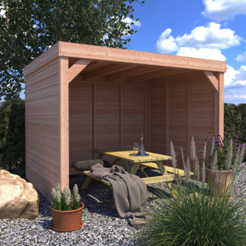 Deze Douglas terrasoverkapping met wanden is een toegevoegde waarde voor iedere tuin. De karakteristieke look die Douglas hout jouw tuin in brengt zorgt voor een natuurlijke en vooral sfeervolle uitstraling. Het Douglas hout is een sterke soort tuinhout dat van nature goed bestand is tegen vuil en vocht. Deze houten overkapping is 330 cm breed en 270 cm diep en wordt geleverd inclusief EPDM-folie voor een waterdichte dakbedekking. Het totaalpakket staat extra stevig dankzij de 12x12 cm Douglas palen.