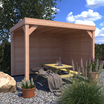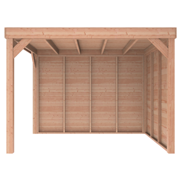 Deze Douglas terrasoverkapping met achterwand en zijwand is een toegevoegde waarde voor iedere tuin. De karakteristieke look die Douglas hout jouw tuin in brengt zorgt voor een natuurlijke en vooral sfeervolle uitstraling. Het Douglas hout is een sterke soort tuinhout dat van nature goed bestand is tegen vuil en vocht. Deze houten overkapping is 330 cm breed en 270 cm diep en wordt geleverd inclusief EPDM-folie voor een waterdichte dakbedekking. Het totaalpakket staat extra stevig dankzij de 12x12 cm Douglas palen.