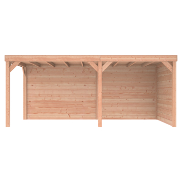 Deze Douglas terrasoverkapping met achterwand en zijwand is een toegevoegde waarde voor iedere tuin. De karakteristieke look die Douglas hout jouw tuin in brengt zorgt voor een natuurlijke en vooral sfeervolle uitstraling. Het Douglas hout is een sterke soort tuinhout dat van nature goed bestand is tegen vuil en vocht. Deze houten overkapping is 582 cm breed en 270 cm diep en wordt geleverd inclusief EPDM-folie voor een waterdichte dakbedekking. Het totaalpakket staat extra stevig dankzij de 12x12 cm Douglas palen.