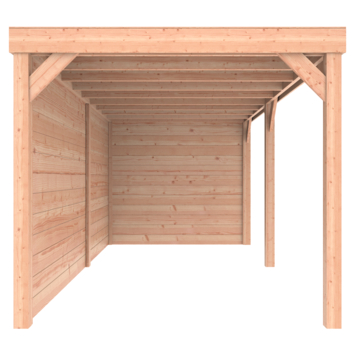 Deze Overkapping Douglas Hout Blank met Blokhutprofiel Achterwand en Zijwand 270x582 cm bij GAMMA bestaat in meerdere varianten. Je kunt de overkapping met achterwand en een zijwanden kopen, maar de overkapping is ook vrijstaand, met 2 zijwanden of met alleen een achterwand verkrijgbaar. Je kunt daarbij ook nog kiezen uit verschillende kleuren en afmetingen. Goede kans dus dat er wat leuks tussen zit.