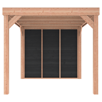 Deze Overkapping Douglas Hout Zwart met Achterwand 270x270 cm bij GAMMA bestaat in meerdere varianten. Je kunt de overkapping met achterwand kopen, maar de overkapping is ook vrijstaand, met 1 zijwand of 2 zijwanden verkrijgbaar. Je kunt daarbij ook nog kiezen uit verschillende kleuren en afmetingen. Goede kans dus dat er wat leuks tussen zit.