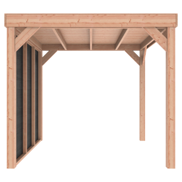 Deze Douglas terrasoverkapping met achterwand is een toegevoegde waarde voor iedere tuin. De karakteristieke look die Douglas hout jouw tuin in brengt zorgt voor een natuurlijke en vooral sfeervolle uitstraling. Het Douglas hout is een sterke soort tuinhout dat van nature goed bestand is tegen vuil en vocht. Deze houten overkapping is 270 cm breed en 270 cm diep en wordt geleverd inclusief EPDM-folie voor een waterdichte dakbedekking. Het totaalpakket staat extra stevig dankzij de 12x12 cm Douglas palen.