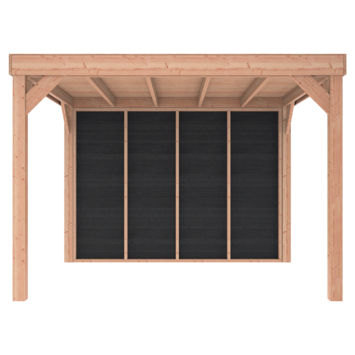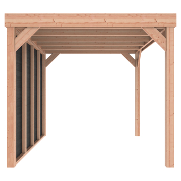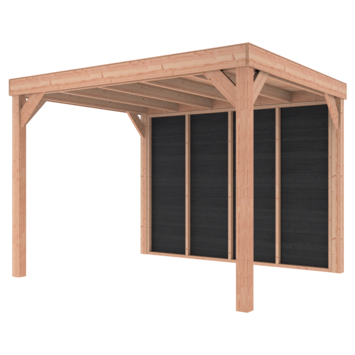 Deze Overkapping Douglas Hout Zwart met Achterwand 270x330 cm bij GAMMA bestaat in meerdere varianten. Je kunt de overkapping met achterwand kopen, maar de overkapping is ook vrijstaand, met 1 zijwand of 2 zijwanden verkrijgbaar. Je kunt daarbij ook nog kiezen uit verschillende kleuren en afmetingen. Goede kans dus dat er wat leuks tussen zit.