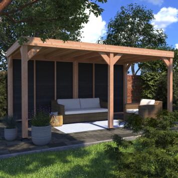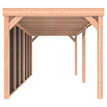 Deze Douglas terrasoverkapping met achterwand is een toegevoegde waarde voor iedere tuin. De karakteristieke look die Douglas hout jouw tuin in brengt zorgt voor een natuurlijke en vooral sfeervolle uitstraling. Het Douglas hout is een sterke soort tuinhout dat van nature goed bestand is tegen vuil en vocht. Deze houten overkapping is 522 cm breed en 270 cm diep en wordt geleverd inclusief EPDM-folie voor een waterdichte dakbedekking. Het totaalpakket staat extra stevig dankzij de 12x12 cm Douglas palen.