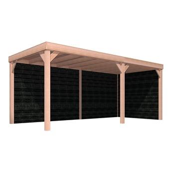 Overkapping Douglas Hout Zwart met Achterwand en Zijwand 270x582 cm