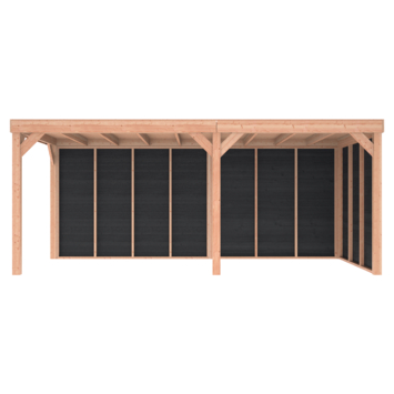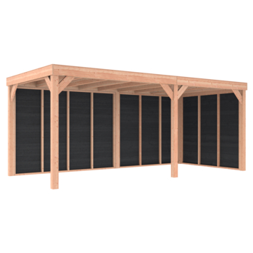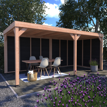 Deze Douglas terrasoverkapping met achterwand en zijwand is een toegevoegde waarde voor iedere tuin. De karakteristieke look die Douglas hout jouw tuin in brengt zorgt voor een natuurlijke en vooral sfeervolle uitstraling. Het Douglas hout is een sterke soort tuinhout dat van nature goed bestand is tegen vuil en vocht. Deze houten overkapping is 582 cm breed en 270 cm diep en wordt geleverd inclusief EPDM-folie voor een waterdichte dakbedekking. Het totaalpakket staat extra stevig dankzij de 12x12 cm Douglas palen.
