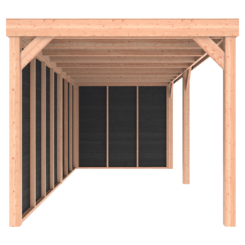 Deze Overkapping Douglas Hout Zwart met Achterwand en Zijwand 270x582 cm bij GAMMA bestaat in meerdere varianten. Je kunt de overkapping met achterwand en een zijwanden kopen, maar de overkapping is ook vrijstaand, met 2 zijwanden of met alleen een achterwand verkrijgbaar. Je kunt daarbij ook nog kiezen uit verschillende kleuren en afmetingen. Goede kans dus dat er wat leuks tussen zit.