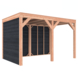 Deze modern vormgegeven overkapping biedt een perfecte balans tussen uitstraling en functionaliteit.De totale afmetingen zijn 245 cm hoog, 395 cm breed en 255 cm diep en heeft een doorloophoogte van 224 cm.Zoek je een overdekte plek voor ontspanning in de tuin? Deze sfeervolle overkapping is een aanwinst voor iedere tuin.Natuurlijke uitstraling, degelijke kwaliteit.De wanden zijn bekleed met Zwart Zweeds rabat en de constructie is gemaakt van onbehandeld Douglas met stevige staanders van 12x12cm.De keuze voor onbehandeld Douglas hout biedt een authentieke uitstraling en staat ook garant voor een lange levensduur.Klaar voor een groene toekomst:Dit modern vormgegeven tuinverblijf is speciaal ontworpen om zonnepanelen of een sedum dak te kunnen ondersteunen, Hierdoor is dit verblijf een duurzame en milieuvriendelijke aanvulling op uw tuin is.Zelf aan de slagDankzij de duidelijke opbouwomschrijving, meegeleverde bevestigingsmaterialen en op maat gezaagde onderdelen, is de installatie van dit tuinhuis een haalbare klus voor iedere gemiddelde doe-het-zelver. Dak bekleding:Wij raden aan om deze Douglas overkapping te voorzien van een EPDM Dak bekleding voor een lekvrij dak (Let op: los bij te bestellen).Onderhoud:Bij het kopen van een overkapping is onderhoud een aandachtspunt… Met Douglas hout heb je het goed voor elkaar, Douglas is namelijk van zichzelf al een sterke houtsoort. Het gaat zonder extra behandeling eenvoudig 10 tot 15 jaar mee. Om de maximale levensduur te verlengen kun je gebruik maken van speciale Douglas beits of Douglas olie en elke 2 jaar opnieuw beitsen of oliën.