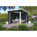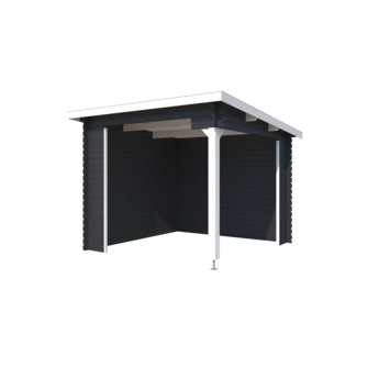 Deze kapschuur is opgebouwd uit antraciet gecoat hout. De coating biedt buiten een strakke afwerking in een moderne kleur ook een beschermende laag. Het betekent echter niet dat het hout onderhoudsvrij is. Ook gecoat hout dient onderhouden te worden. In de loop van tijd moeten de beschadigde puntjes bij getipt worden en na 5-8 jaar behandel je het opnieuw. De overkapping moet dan aan de buiten- en binnenkant nauwkeurig behandeld worden.
