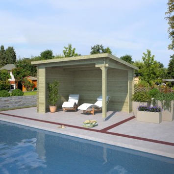 Overkapping Lara geïmpregneerd 380x275cm is een houten overkapping van Outdoor Life Products die je gebruikt om beschut van je tuin te genieten. Deze Lounge Lara is geschikt als overdekte zitplek of als droge berging voor bijvoorbeeld fietsen, tuinmeubelen of een barbecue. De overkapping is gemaakt van geschaafd en geïmpregneerd vurenhout en wordt opgebouwd met de stapelbouwmethode, waarbij de wandbalken laag voor laag in elkaar grijpen met tand- en groefprofielen.