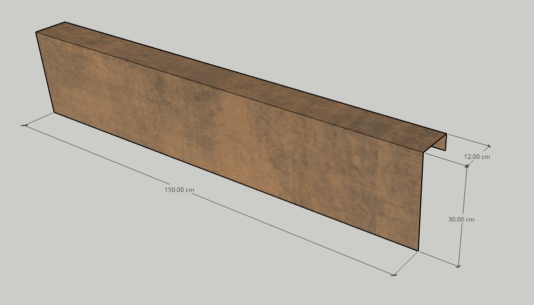 Overzetprofiel Corten staal voor stapelblokken 150x30x12 cm