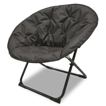Met deze zwarte, ronde, inklapbare campingstoel kun jij altijd lekker zitten. De stoel is makkelijk in te klappen en mee te nemen, naar bijvoorbeeld de camping of het strand. De afmetingen van 69 x 86 x 74 cm zorgen voor voldoende comfort, en de zwarte kleur past in elke buitenruimte. Comfortabel, praktisch en stijlvol.