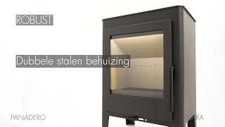 De PANADERO Skara houtkachel heeft een compact design met een royaal glasoppervlak voor een adembenemend uitzicht op het vuur. Het is de ideale aanvulling voor elke hoek in uw huis. De kachel is uitgerust met het Clean Plus Systeem, dat het glas langer schoon houdt, zodat u altijd van de prachtige vlammen kunt genieten. Deze kachel behoort tot de EcoDesign-serie en maakt gebruik van milieuvriendelijke technologie voor een brandstofbesparing van maximaal 40%. Met afmetingen van 653x436x443 mm en een dubbele stalen behuizing (3+3 mm), behoudt deze kachel warmte en zorgt voor een perfecte verbranding.