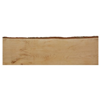 Een aanwinst voor onze woonkamer. Plank is glad en aan de voorkant boomschors.