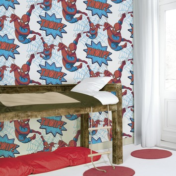 Met het papierbehang - Spiderman DF73299 wordt de kinderkamer in een handomdraai omgetoverd in een waar kinderparadijs. papierbehang is zowel gemakkelijk aan te brengen als te verwijderen, waarbij je geen behangtafel of afstomer nodig heeft. U brengt eenvoudig de lijm aan op de muur en het behang kan worden geplakt. Voor een zo goed mogelijk resultaat dienen de te beplakken oppervlakken droog, egaal van kleur en vlak te zijn. Dit papierbehang is onderdeel van het ruime assortiment behang bij GAMMA, waarmee je huis voorzien kan worden van een moderne, klassieke of een sfeervolle stijl. Kortom, kies voor papierbehang als je op zoek bent naar een nieuwe uitstraling van de kinderkamer volgens de laatste woontrends.