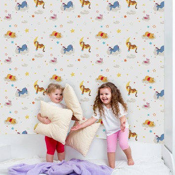 Met het papierbehang - Winnie de Poeh goedemorgen DF70799 van Disney wordt de kinderkamer in een handomdraai omgetoverd in een waar kinderparadijs. Papierbehang breng je aan door het behang in te smeren met lijm en even kort in te laten trekken. Daarna kan de behangbaan op de muur geplakt worden. Op een rol zit 10 meter en het is 53 centimeter breed. Voor een zo goed mogelijk resultaat dienen de te beplakken oppervlakken droog, egaal van kleur en vlak te zijn. Dit papierbehang is onderdeel van het ruime assortiment vliesbehang bij GAMMA, waarmee je huis voorzien kan worden van een moderne, klassieke of een sfeervolle stijl. Kortom, kies voor papierbehang Winnie de Poeh goedemorgen DF70799 als je op zoek bent naar een nieuwe uitstraling van de kinderkamer volgens de laatste woontrends.