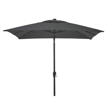 Deze parasol heeft een hoogte van 240 centimeter, een breedte van 250 centimeter en een lengte van 250 centimeter. De diameter van de paal is 4,8 centimeter.