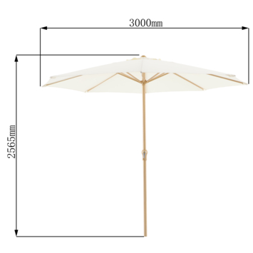 De Handson parasol Lima ecru is ideaal voor wie een grote parasol met een natuurlijke uitstraling zoekt. Met een diameter van 300 cm biedt hij genoeg schaduw voor een groot deel van je tuin of terras. De parasol heeft een stijlvolle ecru kleur en een stevige stok met een houtlook, wat zorgt voor een warme, natuurlijke vibe. Of je nu wilt lunchen in de schaduw of gewoon ontspannen, deze parasol garandeert altijd een fijne schaduwplek.
