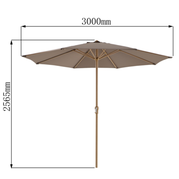 Op zoek naar een parasol die zowel gebruiksvriendelijk als stijlvol is? De parasol Lima taupe biedt met een diameter van 300 cm volop schaduw voor een groot deel van je tuin of terras. Dankzij het uitklapmechanisme met hendel zet je de parasol snel op of dicht. De combinatie van kunststof en metaal maakt de parasol licht, maar wel stevig. De taupe kleur zorgt voor een subtiele, elegante uitstraling die goed past in zowel moderne als klassieke tuinen. Met deze parasol geniet je de hele dag van een schaduwplek.