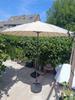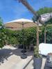 Prachtige parasol die super handig en makkelijk is. Precies groot genoeg en een mooi designe. Met een verrijdbare voet van 30 kilo in de kantel stand heeft ie het wel zwaar met een stevige windvlaag maar tot nu toe blijft ie wel staan.