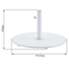 De parasolvoet rond wit biedt een betrouwbare basis voor je parasol. Deze voet heeft een diameter van 66,5 cm en is 1 cm hoog. Met een gewicht van 35 kg zorgt hij voor een stabiele verankering. De voet is gemaakt van staal en geschikt voor parasolpalen met een diameter tussen 38 mm en 48 mm. De voet is verrijdbaar, wat het verplaatsen gemakkelijk maakt. De witte kleur maakt deze voet een nette en stijlvolle keuze voor elke tuin.