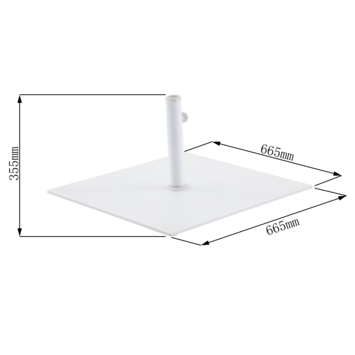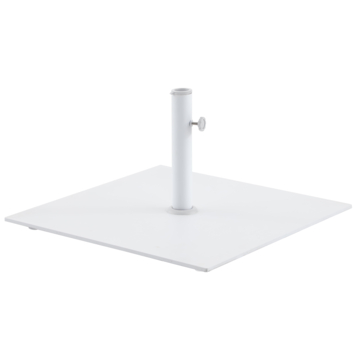 De parasolvoet vierkant wit biedt een stevige en stabiele basis voor je parasol. Deze voet heeft een lengte en breedte van 66,5 cm en een hoogte van 1 cm. Het staal waarmee de voet is vervaardigd, zorgt voor een gewicht van 35 kg, ideaal voor het verankeren van parasolpalen met een diameter tussen 38 mm en 48 mm. De voet is verrijdbaar, waardoor je hem gemakkelijk kunt verplaatsen. Het witte design past mooi bij verschillende tuininstellingen.