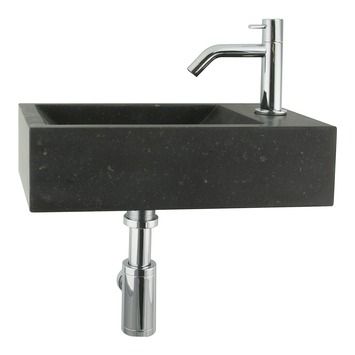 Deze fonteinset van Patra met afmetingen van 40cmx23cmx11cm is vervaardigd uit natuursteen. Hierdoor heeft de fontein een stijlvolle en karakteristieke uitstraling. De fontein van zwart natuursteen bevestigt u in sanitaire ruimtes, zoals toilet of douche. De bevestigingspunten waarmee u de fontein aan de muur vast maakt, bevinden zich uit het zicht zodat deze niet meer te zien zijn na bevestiging. Dit zorgt voor een strak eindresultaat. U krijgt de Patra-fonteinset geleverd inclusief koudwaterkraan, afvoer en syfon. Deze complete fonteinset is 40cm lang, 23cm breed en 11cm diep.