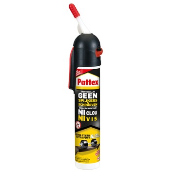 De Pattex Geen-Spijkers-Geen-Schroeven 254 gram is een montagelijm voor een muurvaste bevestiging zonder gereedschap. De Pattex Geen-Spijkers-Geen-Schroeven 254 gram is oplosmiddelvrij en is geschikt voor binnen gebruik.