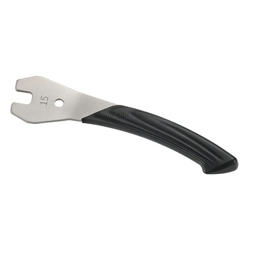 Met een pedaalsleutel kunt u het pedaal van uw fiets los- of vastzetten. De sleutel heeft een bekbreedte van 15mm en is gemaakt van Cr-Mo-staal. Het handvat van de sleutel is naar buiten toe omgezet en de sleutel is voorzien van extra grip op de arm. Zo kunt u kracht zetten zonder dat de sleutel weg schiet.