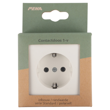 De witte wandcontactdoos met randaarde van Peha kunt u gebruiken om elektrische apparaten te voorzien van stroom. De ‘aarde’ zorgt ervoor dat, in geval van kapotte- of losgeschoten bedrading in een apparaat (bv. wasmachine of computer), de metalen delen niet onder stroom komen te staan, de stroom wordt dan via een extra aardedraad in de aarde geleid.