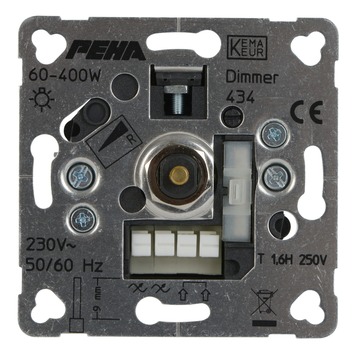 Dimmer basiselement uit de Peha Standard-serie, geschikt voor het dimmen van gloei- en halogeenlampen met een minimaal wattage van 60watt en een maximaal wattage van 400watt. U kunt de dimmer ook toepassen in een wisselschakeling. Dan kunt u verlichting vanaf twee verschillende plaatsen aan- en uitschakelen. Centraalplaat voor dit basiselement is los leverbaar in diverse kleuren.