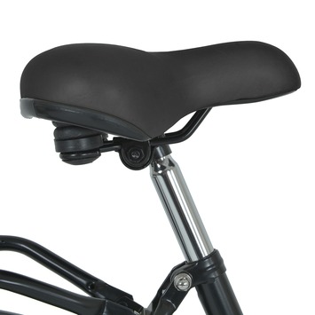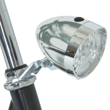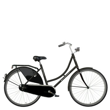 Traditionele omafiets met lakdoek kettingkast en jasbeschermers. Extra stevig stalen frame en bagagedrager met geïntegreerde klapstandaard. 28 inch enkelwandige velgen met reflector in de spaken. LED verlichting op batterijen. Comfort zadel. De fiets heeft stijlvolle zwarte banden, zadel en handgrepen. De chromen koplamp, trappers en de beschermstrip op de kettingkast maken de fiets helemaal af.