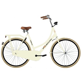De Pelikaan Urban damesfiets is een kwalitatief hoogwaardige, comfortabele stadsfiets met een moderne uitstraling. De fiets heeft 28inch-wielen en dubbelwandige velgen en is dus extra stevig. De bruine handvatten en het bruine zadel geven de fiets een chique tintje. De parelwitte fiets heeft een oversized stalen frame en terugtraprem en wordt geleverd met een lakdoeken kettingkast, led-batterijverlichting aan de voor- en acherzijde van de fiets, een slot. Al met al is het een zeer complete fiets die prettig is geprijsd.