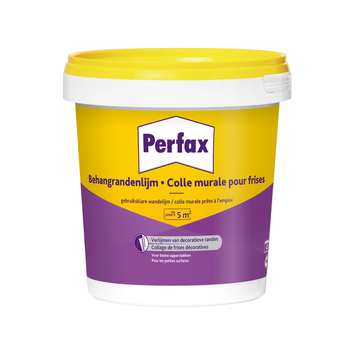 Perfax behangrandenlijm 750 gram is ideaal voor het verlijmen van decoratieve behangranden. Deze Perfax behangrandenlijm hecht op vrijwel alle ondergronden.