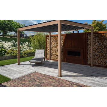 Het aluminium frame en gegalvaniseerde stalen lamellen maken deze pergola uitermate weerbestendig en zorgen voor een lange levensduur.
