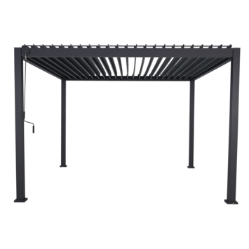 Het lamellendak van de pergola kun je eenvoudig zelf bedienen (open en dicht), waardoor je in elke situatie comfortabel buiten kunt zitten.