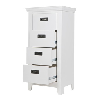Wil jij een handige ladekast? Ga dan voor de Perpignan ladekast grenen wit 97x50x35 cm. Deze ladekast is onderdeel van de Perpignan-serie, een helderwitte serie die bestaat uit meerdere meubels met een basic vormgeving en zijn hier en daar voorzien van een sierlijk randje. De kast is voorzien van vier lades met metalen grepen is een handige opberger en heeft een sierlijk randje aan het bovenblad. Kortom: een toevoeging aan al je andere opbergmogelijkheden.
