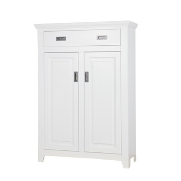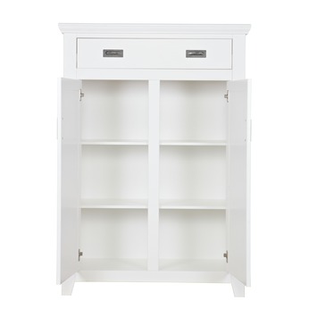 Een echte meidenkast met laden en mooie paneeldeuren? Dat is de Perpignan meidenkast halfhoog grenen wit 142x100x38 cm! Deze kast is onderdeel van de Perpignan-serie, een helderwitte serie die bestaat uit meerdere meubels met een basic vormgeving en hier en daar voorzien van een sierlijk randje. Deze kast heeft een handig formaat en biedt met de drie legplanken veel opbergruimte. De bovenkant van de kast is voorzien van een sierlijk randje. Kortom: een echte aanwinst voor iedere meidenkamer.