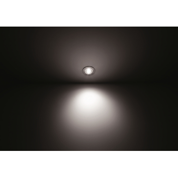 De drie chroomkleurige Philips Dive badkamerinbouwspotjes bieden een moderne uitstraling. Het gelijkmatige, warmwitte LED-licht is zeer krachtig en kan bovendien met de juiste dimmers worden gedimd. Door de beperkte hoogte kunnen de spotjes in bijna elk verlaagd plafond worden weggewerkt. Ook recht boven de douche of het bad omdat de spotjes beschikken over een IP65-classificatie, die aangeeft dat ze uitstekend geschikt zijn voor vochtige ruimtes.