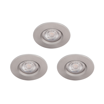 Deze drie nikkelkleurige Philips Dive inbouwspots voor de badkamer ogen modern. Het gelijkmatige, warmwitte LED-licht is zeer krachtig en toch aangenaam, ideaal voor bij het scheren of opmaken. Wilt u een wellnessgevoel creëren? Combineer de spotjes dan met de juiste dimmer en geniet van de rust. De drie inbouwspotjes bieden volgens hun IP65-classificatie bescherming tegen binnendringend vocht en zijn door de beperkte montagehoogte in de meeste standaard verlaagde plafonds weg te werken, ook recht boven douche of bad.