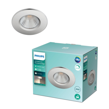 De chroomkleurige Philips Dive inbouwspotjes voor de badkamer hebben een moderne uitstraling. Het gelijkmatige, warmwitte LED-licht is zeer krachtig, maar kan met een geschikte dimmer worden gedimd: ideaal als u even van een heerlijk bad wilt genieten. Door de beperkte montagehoogte kunnen de spotjes in bijna elk verlaagd plafond worden weggewerkt. Dat kan zelfs recht boven de douche of het bad, want ze hebben ze een IP65-classificatie, waarmee ze uitstekend geschikt zijn voor vochtige ruimtes zoals de badkamer.