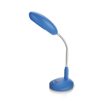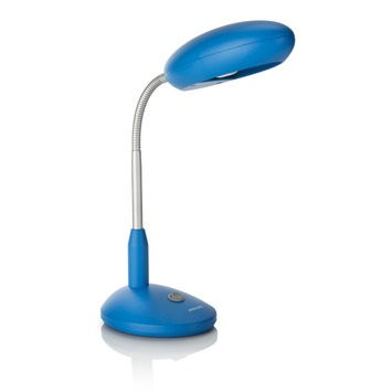 De Philips Bureaulamp 1x11W Blauw wordt geleverd inclusief lichtbron van 11 watt. De bureaulamp is gemaakt van hoogwaardig synthetisch materiaal. Door de blauwe kleur en speelse vormgave past deze bureaulamp goed in een vrolijke kamer. De flexibele hals maakt het makkelijk om de lichtstraal goed te richten. Kortom, de Philips bureaulamp is een goede verlichtingsbron voor op het bureau.