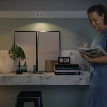 Kies met vloeiend dimmen de juiste helderheid, of jenjegeconcentreerd wilt werken of wilt ontspannen in uw vrije tijd. Met de geïntegreerde Philips Casement LED dimbare inbouwspot kunt jevoor elk moment van de dag het juiste licht instellen.